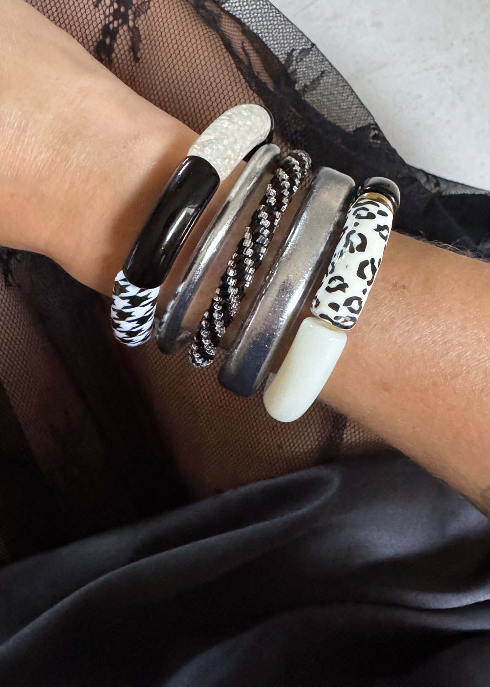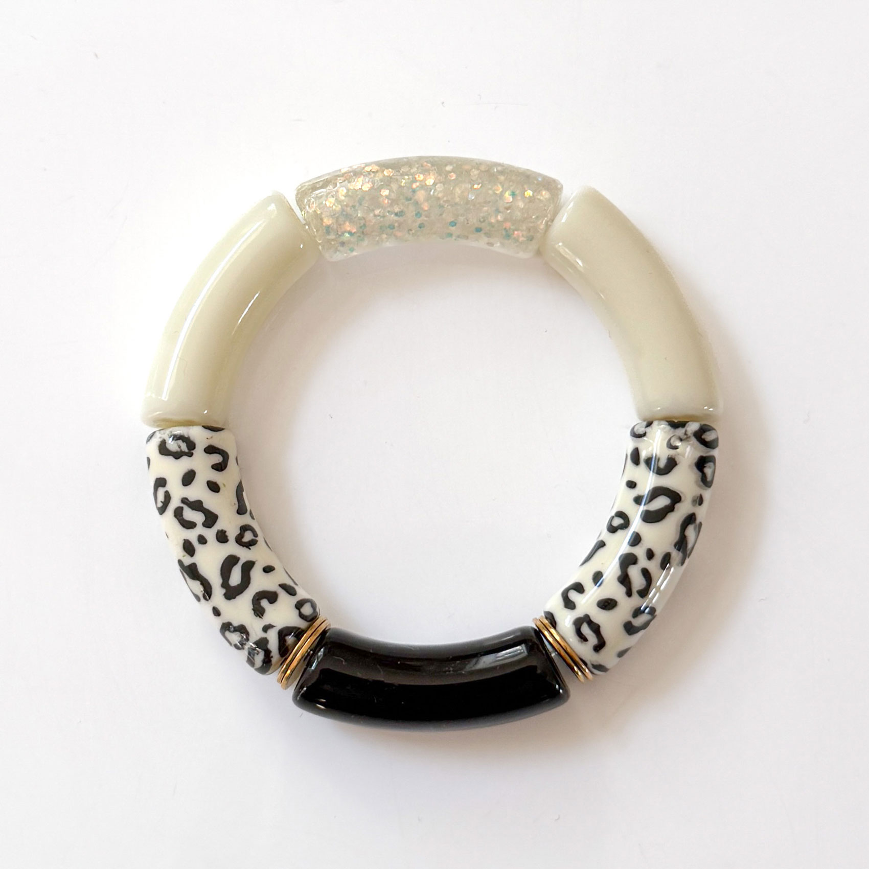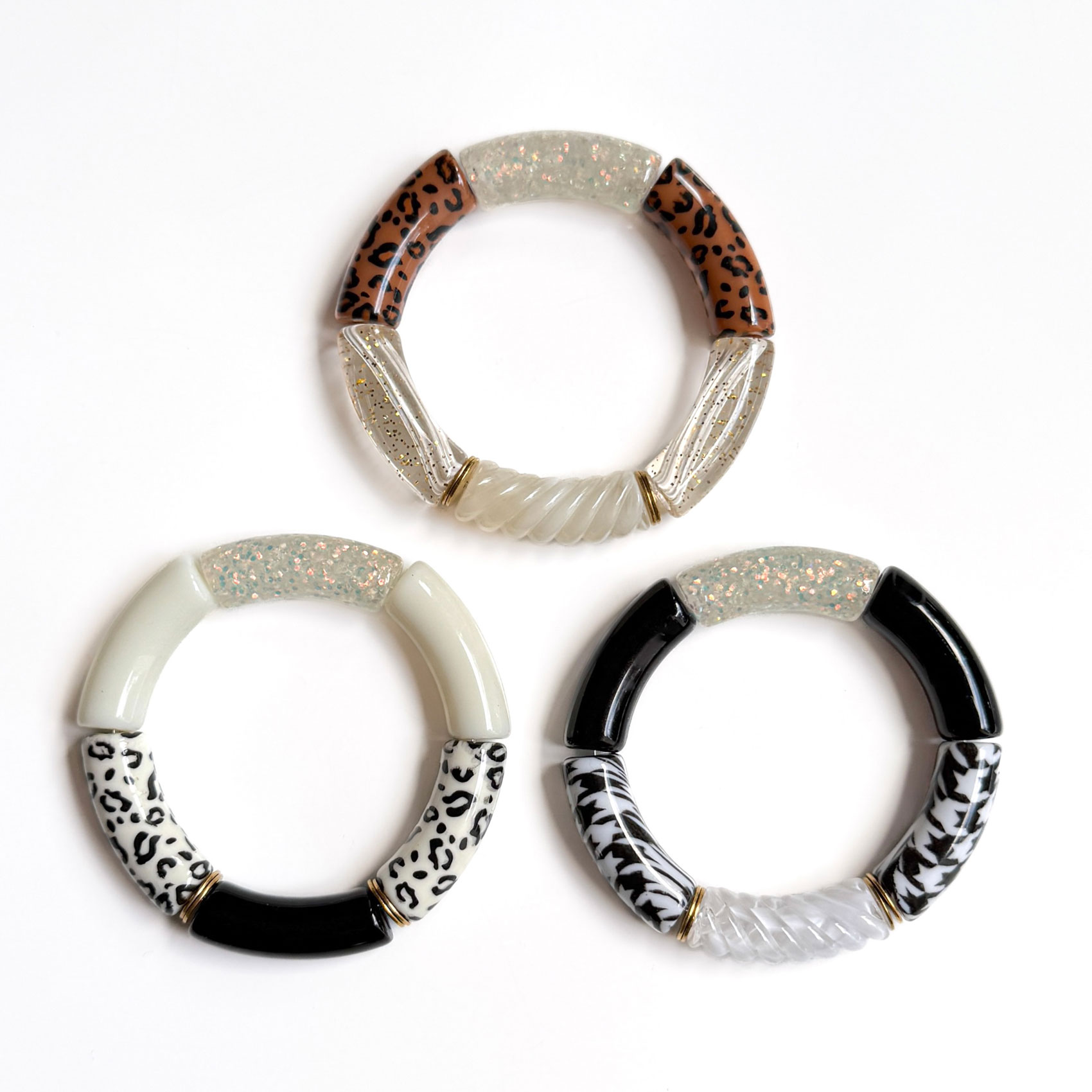 Découvrez les bracelets Big Cosmic Love – Cape Town, des pièces de caractère imaginées et fabriquées à la main dans mon atelier. Les bracelets sont composés de perles en acétate haut de gamme. Chacune d’elle est sélectionnée pour ses ses motifs modernes : imprimé léopard ou pied-de-poule, nacre scintillante. Monté sur un fil élastique résistant, il est pensé pour s’adapter à tous les poignets.
