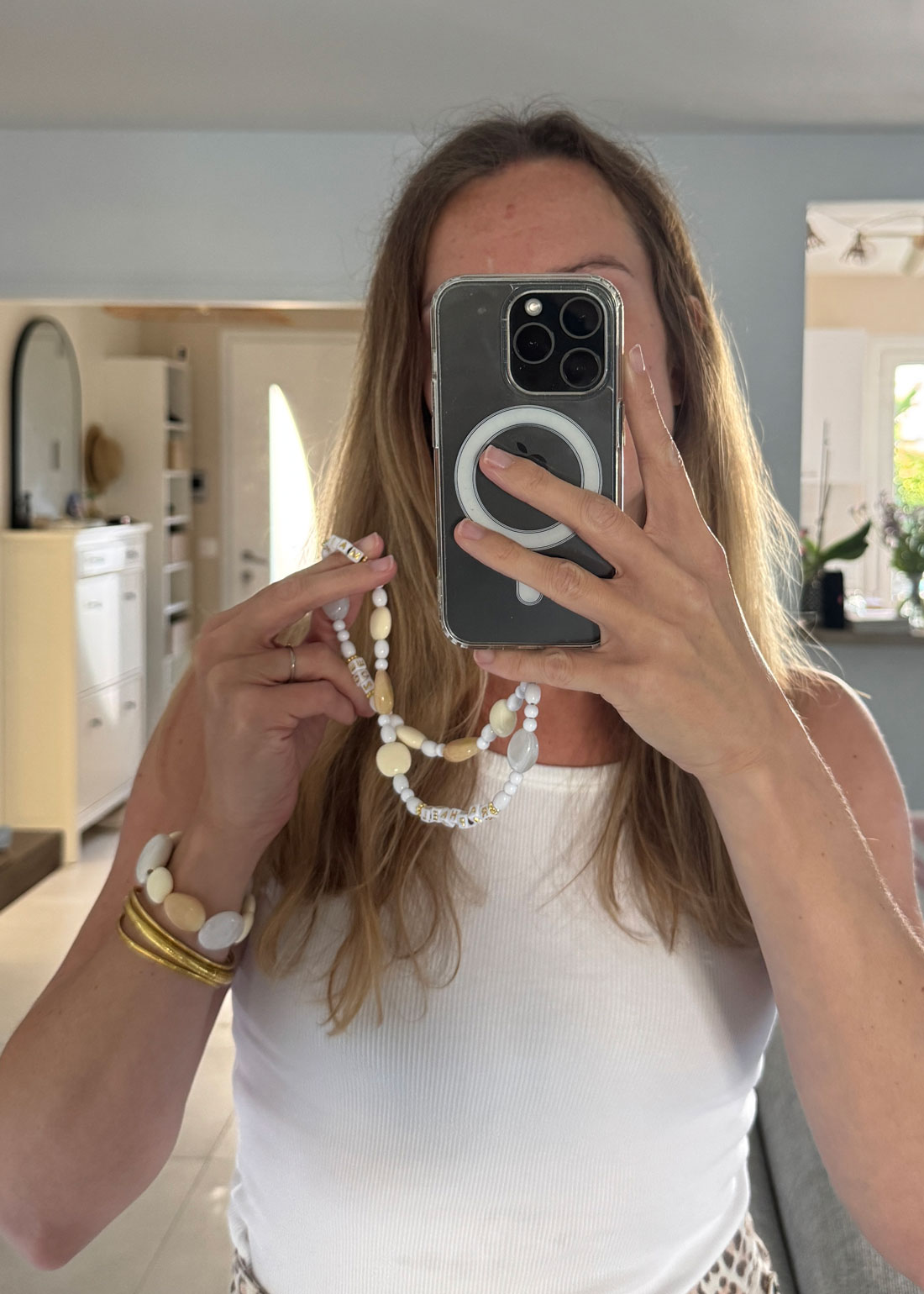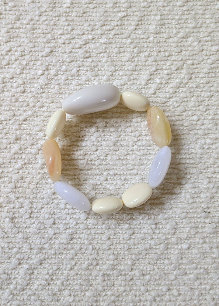 Apportez une touche de douceur à votre poignet avec ce bracelet fait de perles en résine au ton beige.