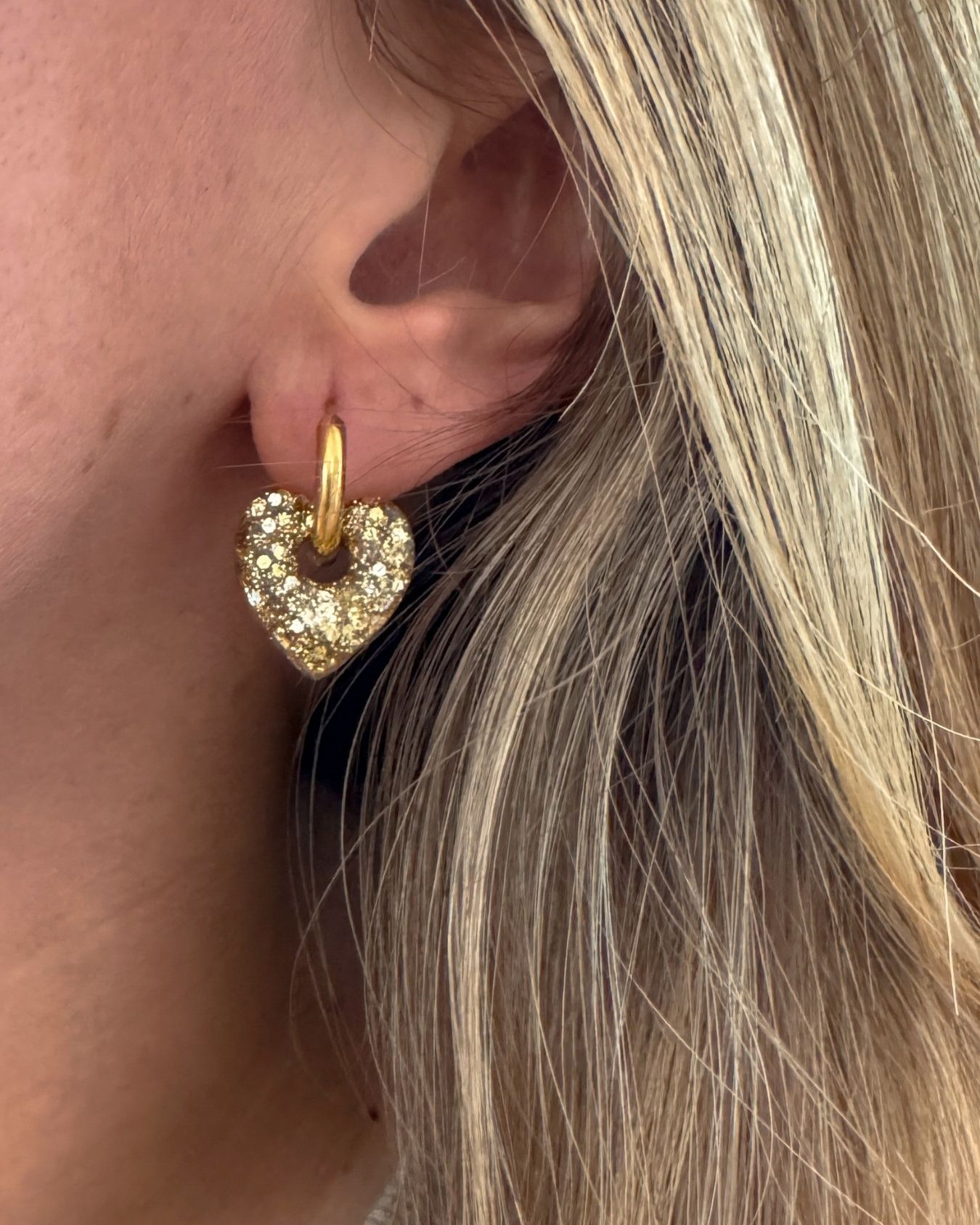 Découvrez les mini créoles Coeur couleur Doré. Des boucles d’oreilles coeurs en acier inoxydable pensées pour illuminer chaque tenue. Leur design allie une créole fine et un coeur en résine pailletée, façonné à la main dans mon atelier, ce qui rend chaque pièce unique. Grâce à leur petite taille (environ 15 mm la créole et 15 mm le coeur), elles conviennent également aux enfants.