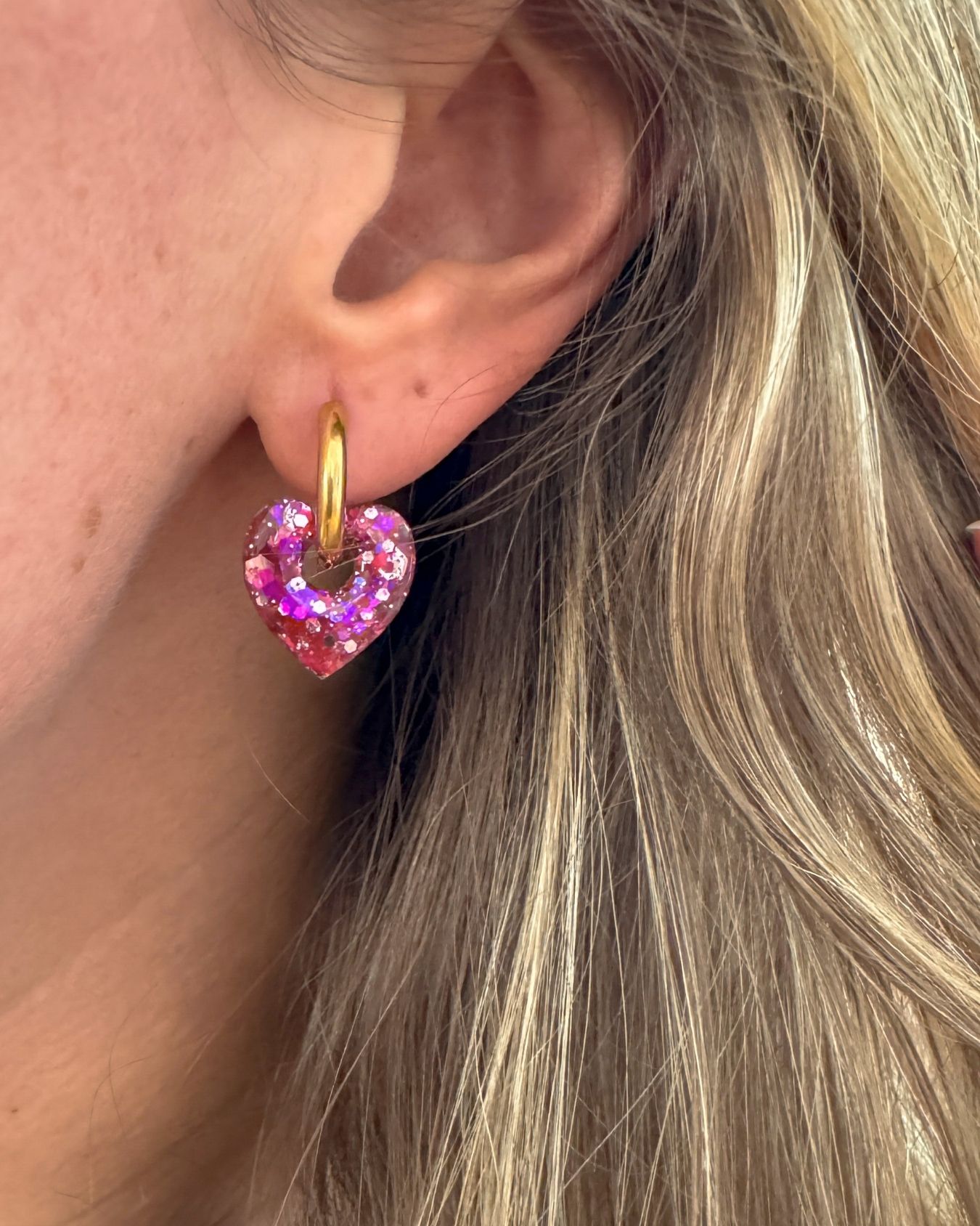 Découvrez les mini créoles Coeur couleur Fuchsia. Des boucles d’oreilles coeurs en acier inoxydable pensées pour illuminer chaque tenue. Leur design allie une créole fine et un coeur en résine pailletée, façonné à la main dans mon atelier, ce qui rend chaque pièce unique. Grâce à leur petite taille (environ 15 mm la créole et 15 mm le coeur), elles conviennent également aux enfants.