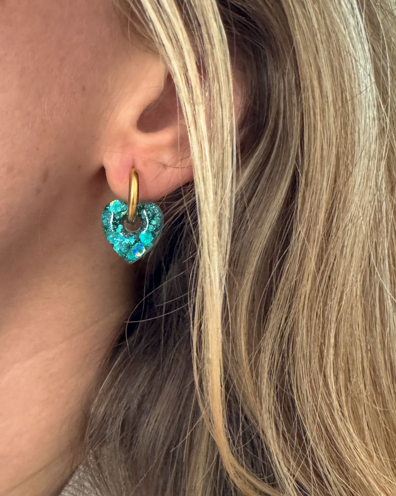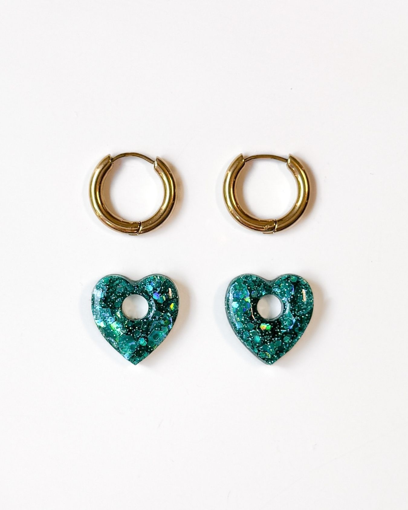 Découvrez les mini créoles Coeur Mermaid. Des boucles d’oreilles coeurs en acier inoxydable pensées pour illuminer chaque tenue. Leur design allie une créole fine et un coeur en résine pailletée, façonnée à la main dans mon atelier, ce qui rend chaque pièce unique. Grâce à leur petite taille (environ 15 mm la créole et 15 mm le coeur), elles conviennent également aux enfants.