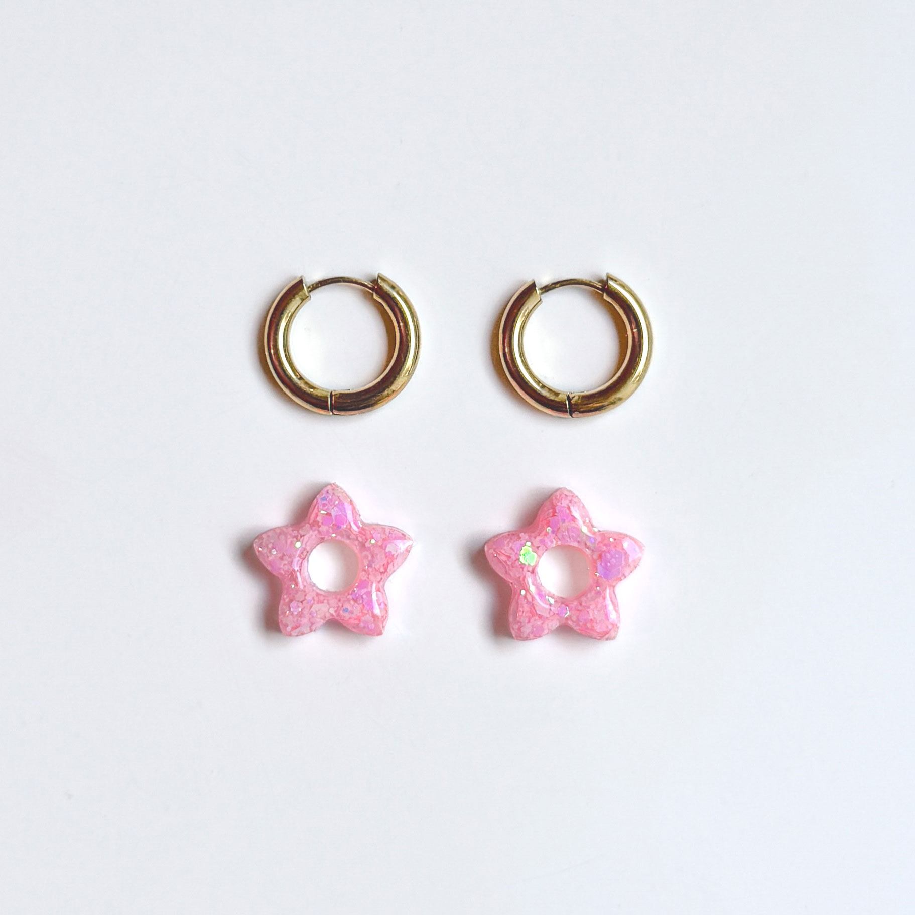 Chaque fleur rose en résine pailletée est entièrement faite à la main dans mon atelier, ce qui garantit un rendu unique. En effet, la résine est coulée et façonnée avec précision, afin d’obtenir une brillance subtile. De plus, leur petite taille en fait un modèle polyvalent, adapté aux adultes comme aux enfants. Ainsi, ces mini créoles deviennent un accessoire raffiné pour un cadeau personnalisé ou un bijou du quotidien.