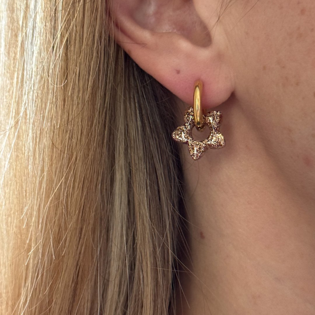 Dimensions : environ 15 mm pour la créole, 15 mm pour la fleur.